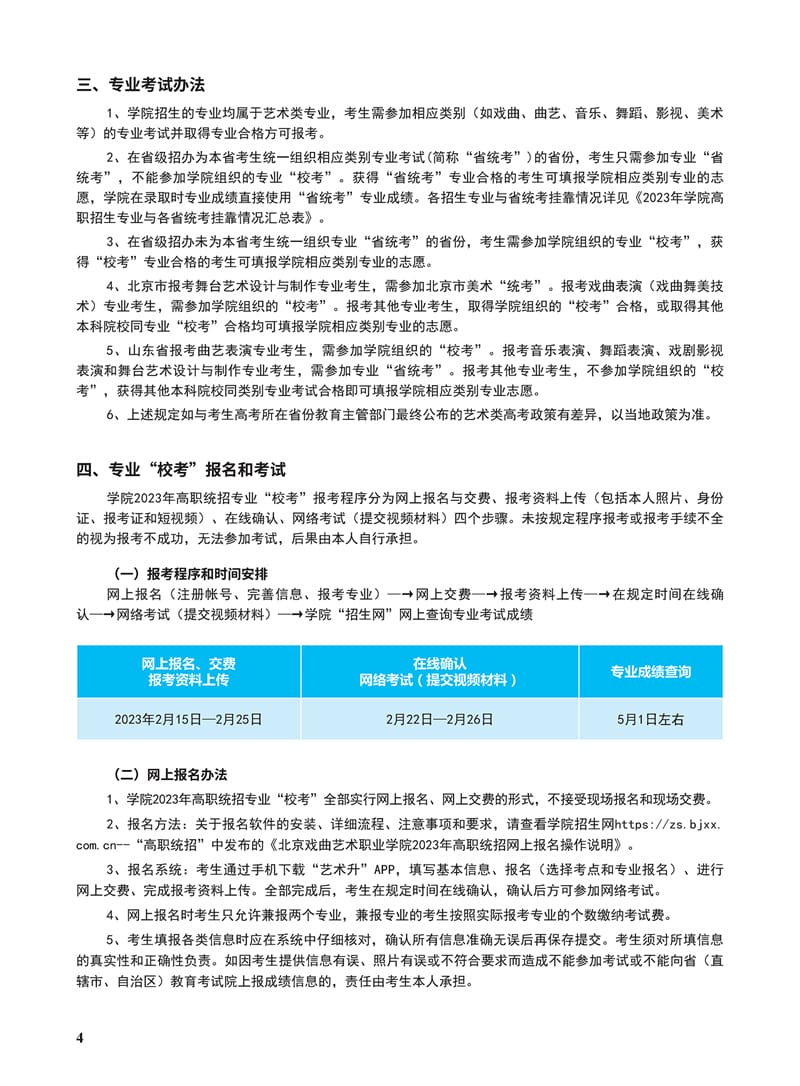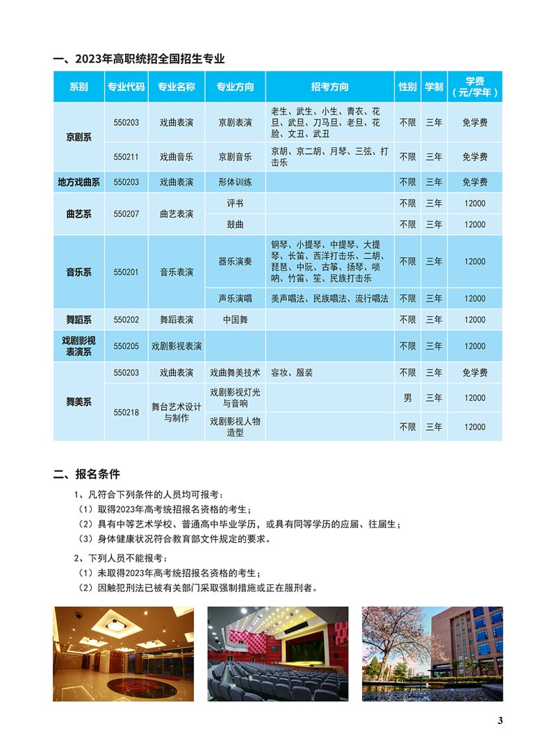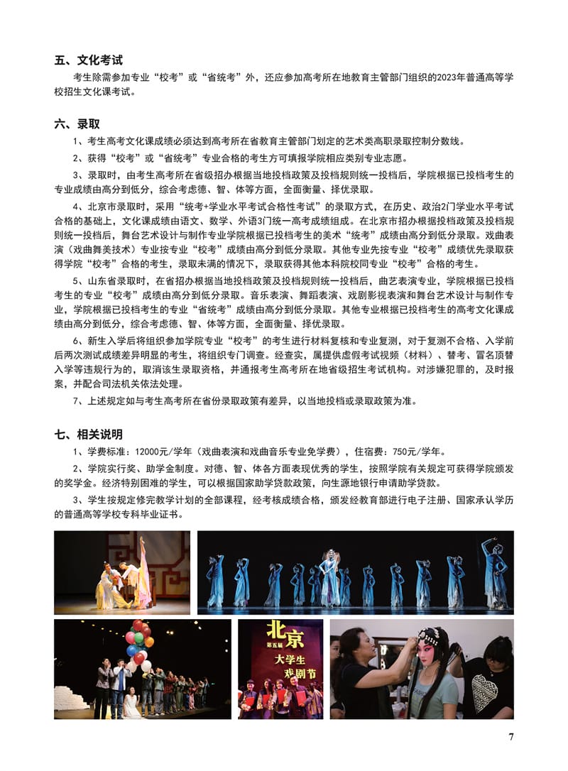 北京戏曲艺术职业学院2023年高职统招招生简章